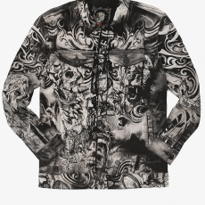 KDV Hariç:666,67 ₺Kingz Beyaz Üzerine Sis ve Kuru Kafa Baskılı Uzun Kollu Gömlek